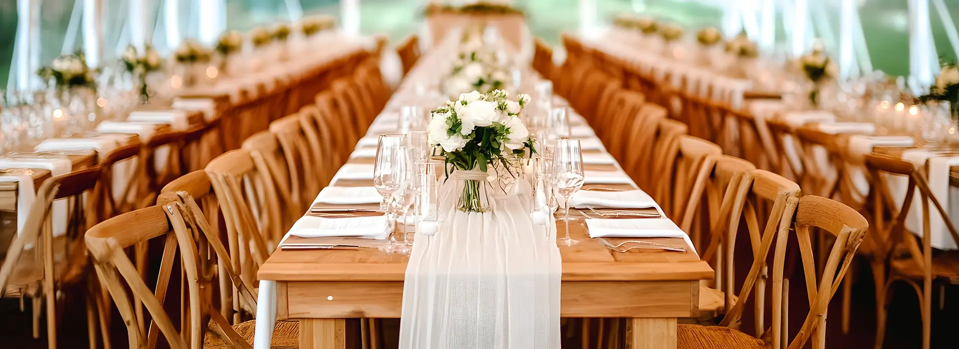 Des chaises pour tous les styles et toutes les occasions : chaises Napoléon, chaises pliantes, chaises de banquet… nous disposons d’un large choix pour s’adapter à l’ambiance et aux exigences de votre événement. Confortables et élégantes, elles s’associent parfaitement à notre gamme de tables et de mobilier pour créer un espace de réception cohérent et soigné.